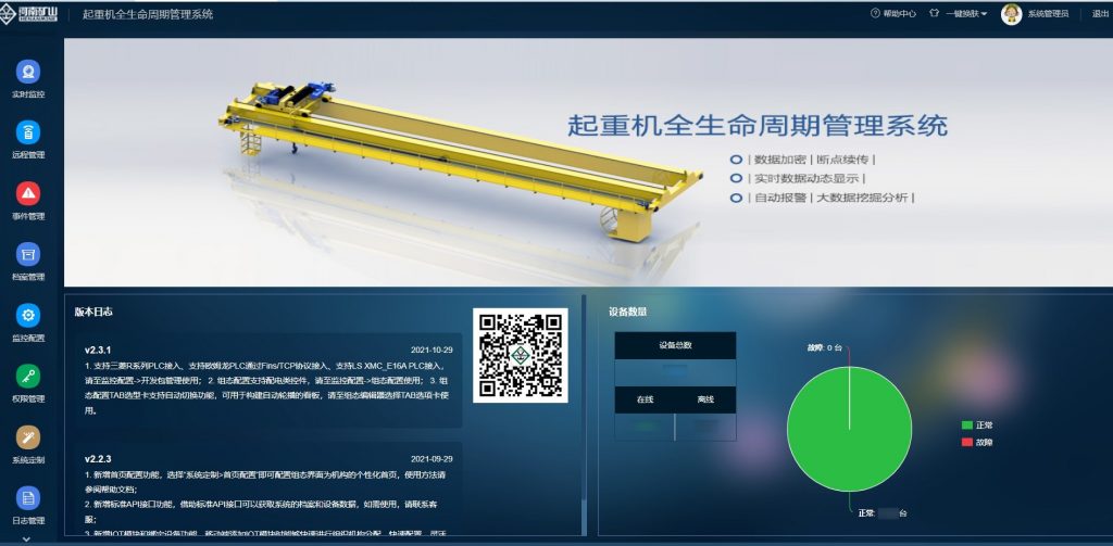 基于“智能、安全、绿色”等先进理念,实施新型起重机全生命周期设计管理,加大对超大吨位、超大跨度起重机及高精度、全自动、节能环保起重机等新产品的研发生产。
