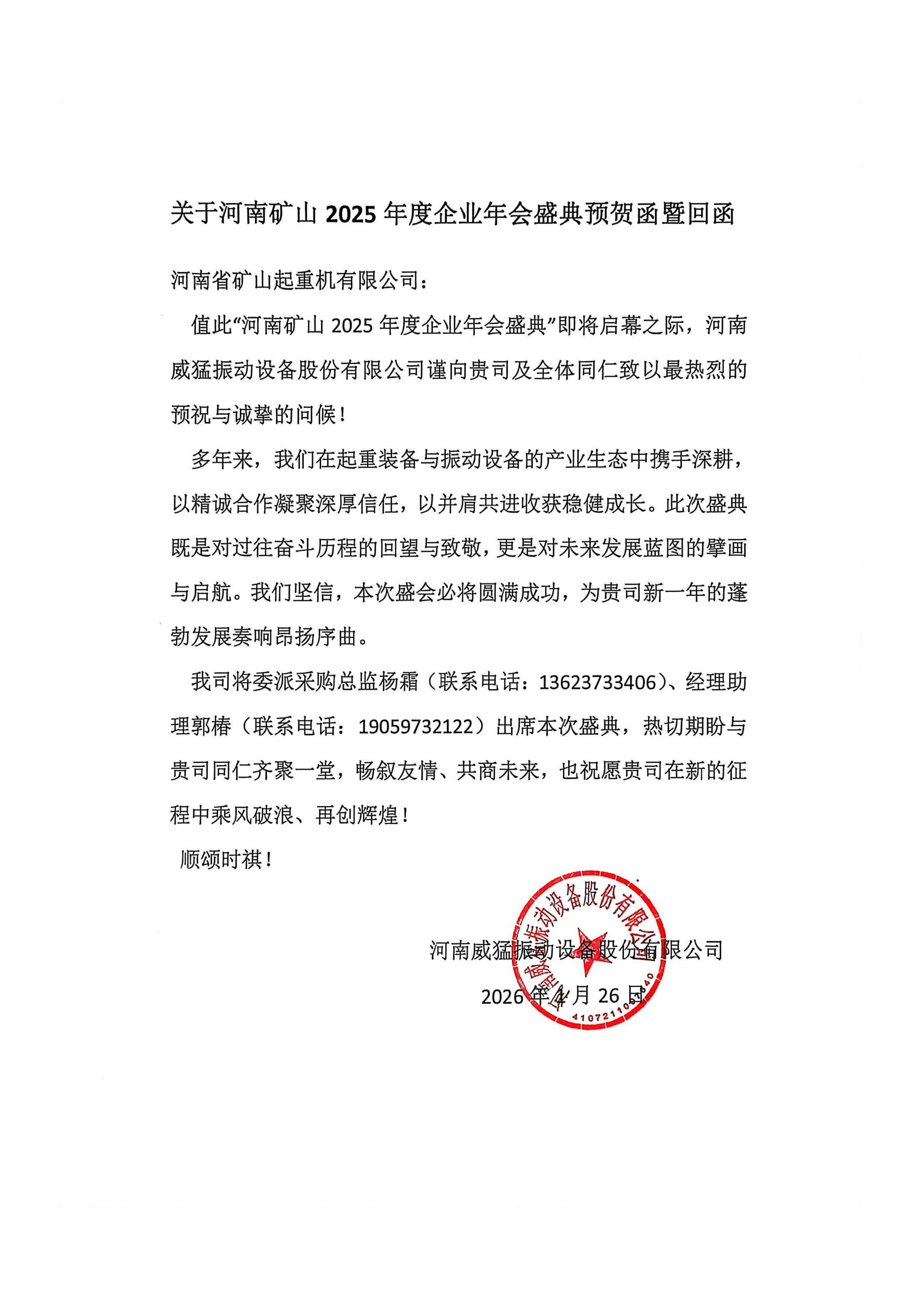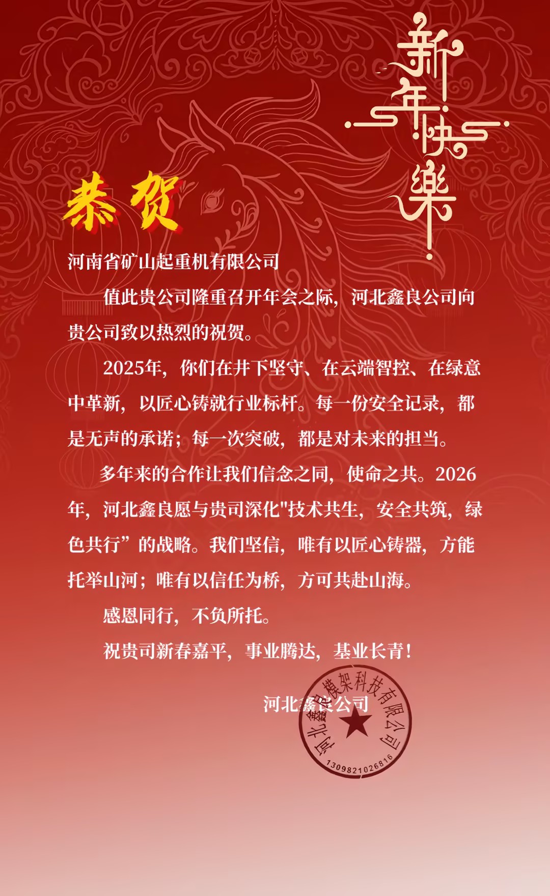 大道同行,共同富裕。值此辞旧迎新之际,河南矿山2025年度企业年会盛典即将隆重启幕。各合作单位纷纷致贺,预祝盛会圆满举行、共赞企业发展成就。